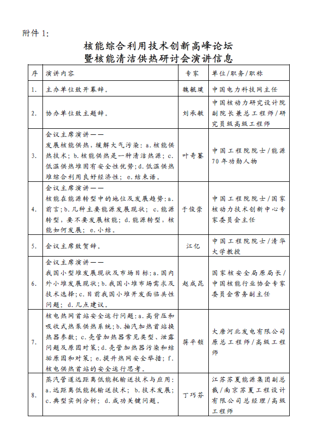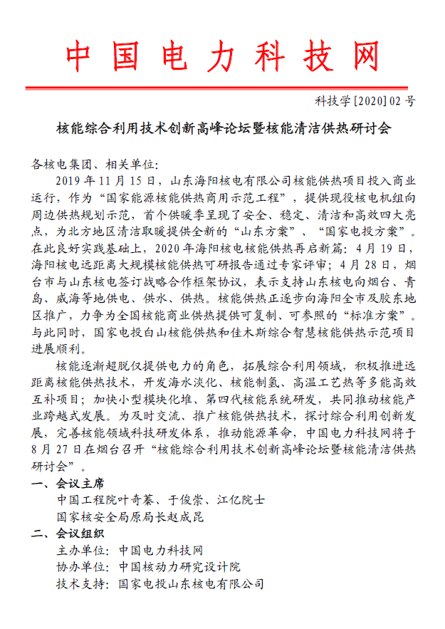 核能綜合利用技術創新高峰論壇暨核能清潔供熱研討會