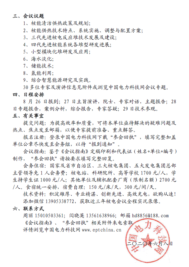 會議名稱:核能綜合利用技術創新高峰論壇暨核能清潔供熱研討會