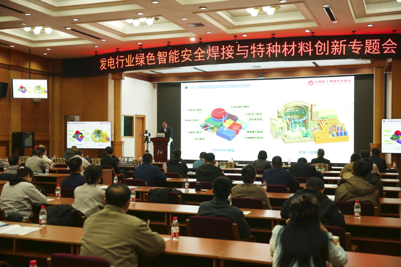 緊接著,朱建青秘書長以“核電領域先進焊接技術應用與發展”為題發表主旨演講,聚焦核電領域先進焊接技術應用與發展作主旨演講,圍繞核電安全與發展,說明焊接自動化、數字化是應對核安全監管加強、焊工缺口大等問題的關鍵。介紹TIG、MAG、埋弧自動焊等技術在核電主管道、鋼襯里、支架等部位的應用,焊接效率較手工焊提升1-5倍,一次合格率超98%。數字化應用實現焊接任務在線管理、數據實時采集與可視化,支撐核電規模化發展,適配“雙碳”背景下的能源需求,為核電行業焊接技術創新提供了新思路。